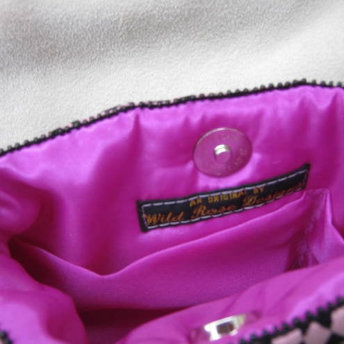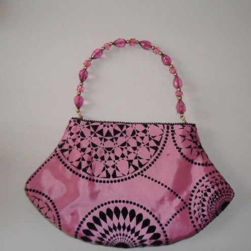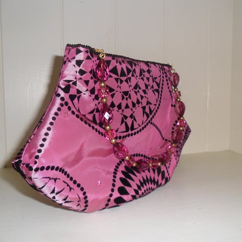 Made from a flocked tafetta and with cerise lining, this cute little bag has an inside pocket and closes with a magnetic snap.