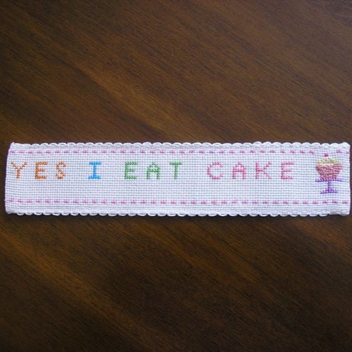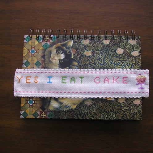 I have added a pink border and embroidered my own design of a little pink and cream cupcake on a lilac stand.