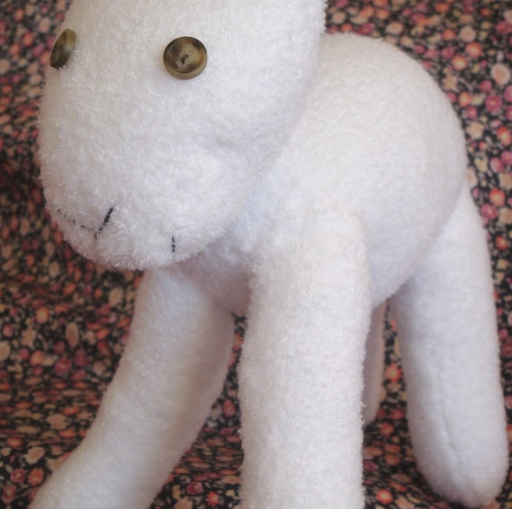 Two cute buttons for eyes and a handstitched smile will make you fall in love with her!