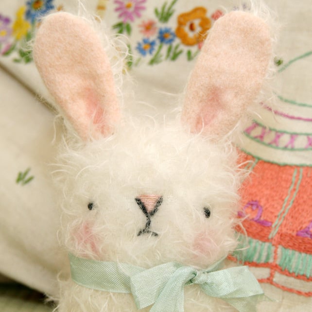 I love working in mohair it has such a lovely look and feel. I also wanted to make a cute tiny bunny for someone to love.