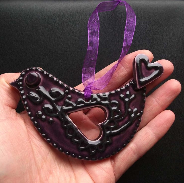 It has then been glazed with a lovely glossy purple colour and fired again to 1100 degrees.