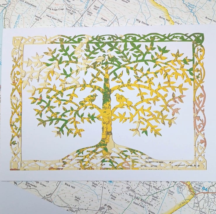 Inspired by nature and life, this is a lovely print of an original design by myself of a papercut that I did on old vintage maps.
