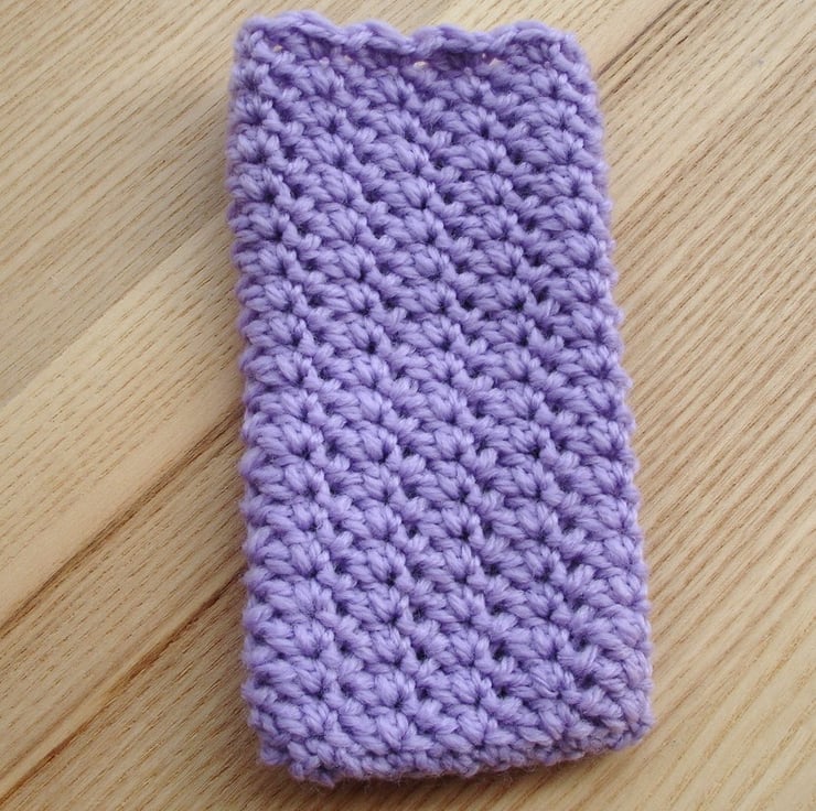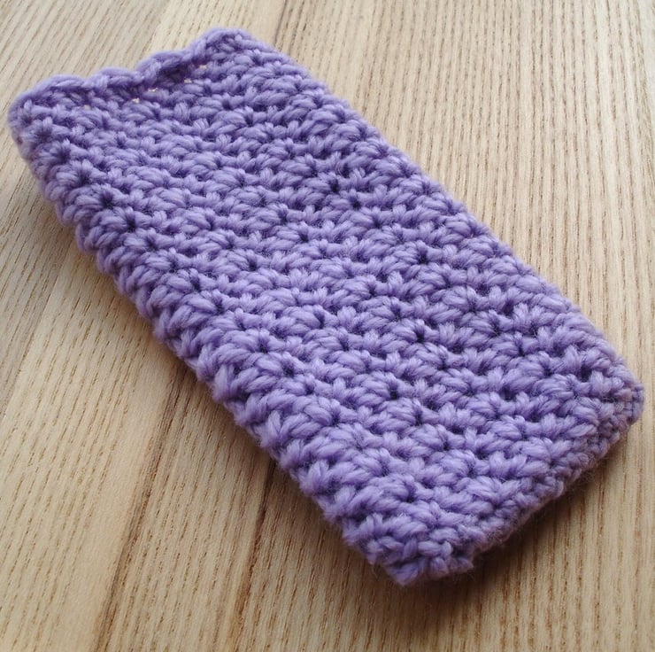 I'm branching out! This sweet lilac crochet phone cozy is one of my newest creations having recently become hooked on crochet again. It is made using simple but effective ripple stitches which gives it a really lovely texture and a nice snug fit on an iPhone. No button closure on this one - the snug fit keeps the cozy firmly in place.