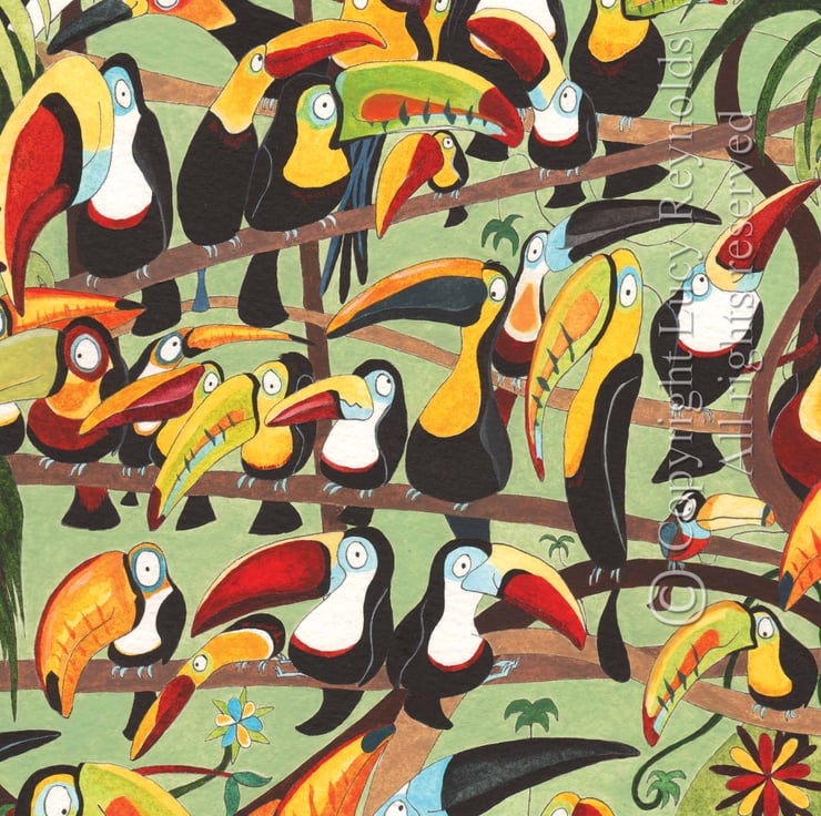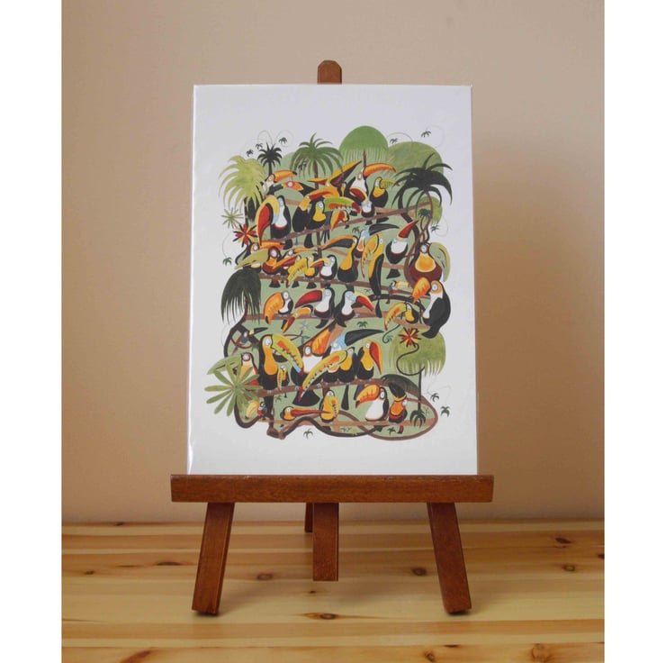 An archival quality digital print of 'Toucan Jungle'. Printed on acid-free 310gsm fine art paper using pigment inks and an 8 colour system. A4 sized