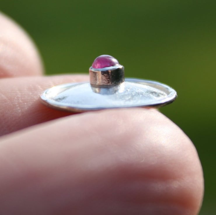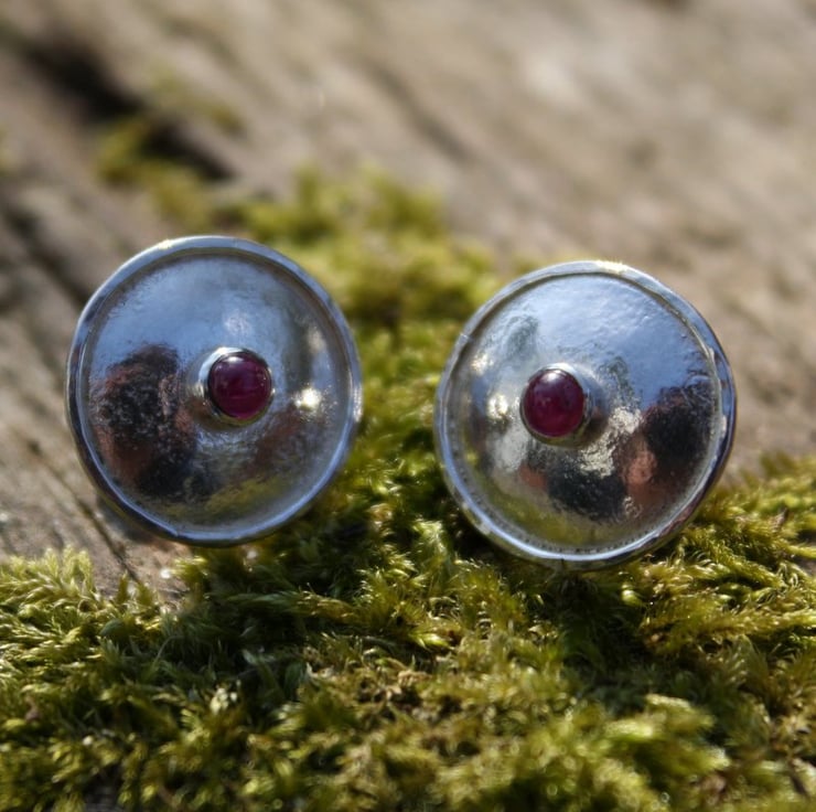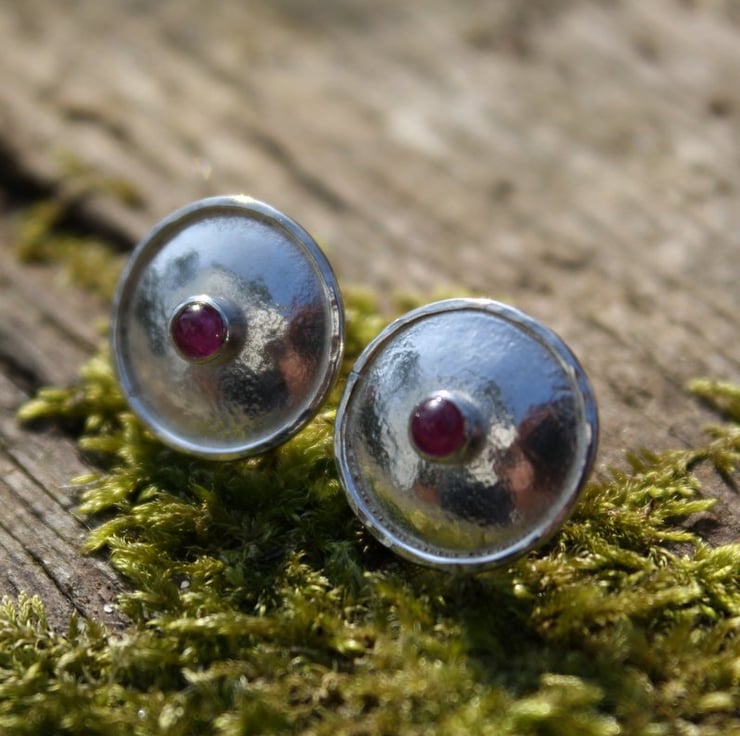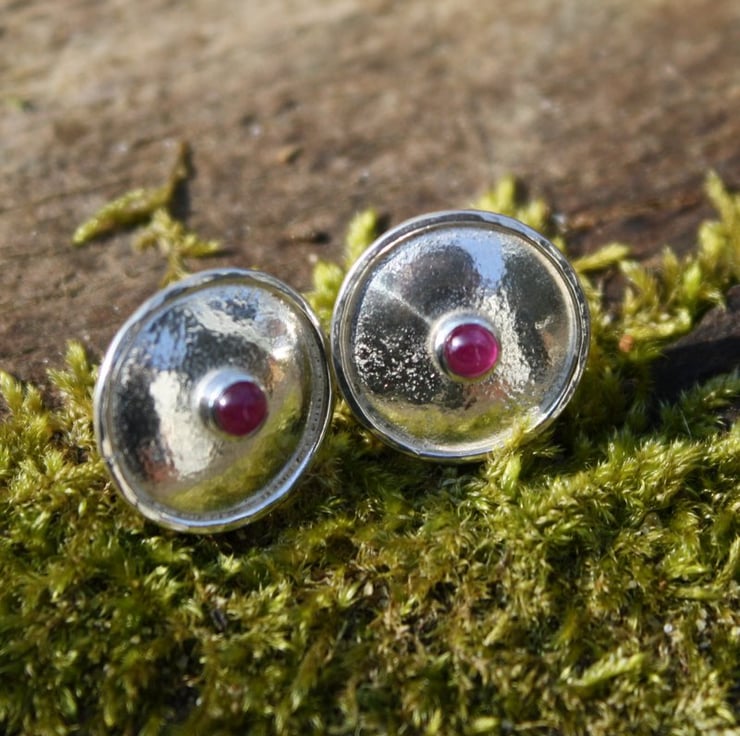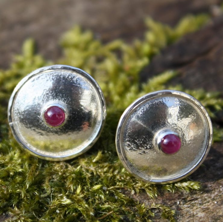 Small silver domed studs, set with very pretty pinky ruby cabochons.