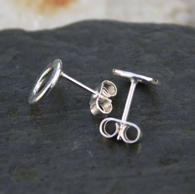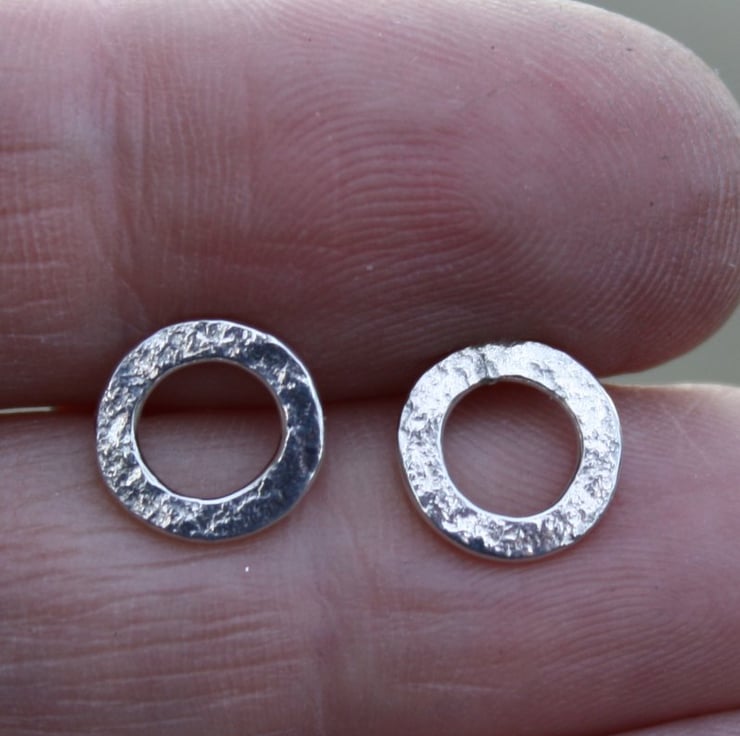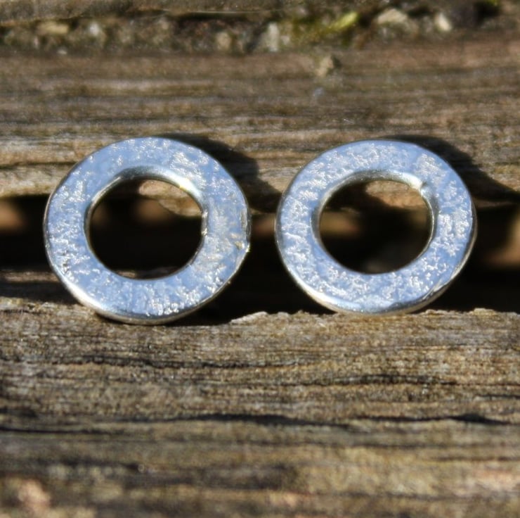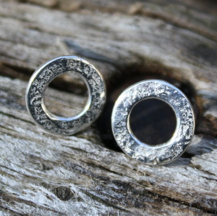 Attractive, yet simple sterling silver circles with a roughened texture, burnished to a subtle shine.