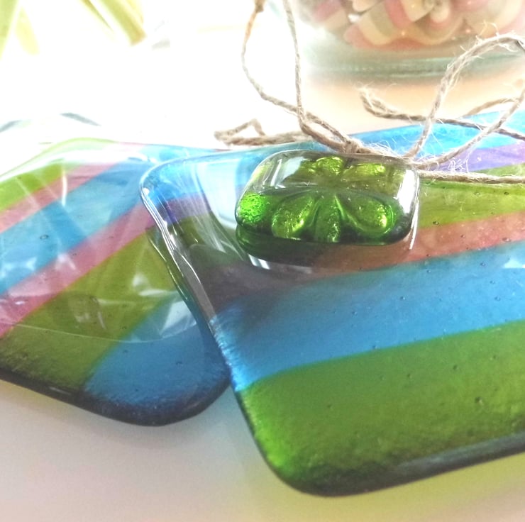 scrummy candy coloured fused glass coasters, to cheer up your day