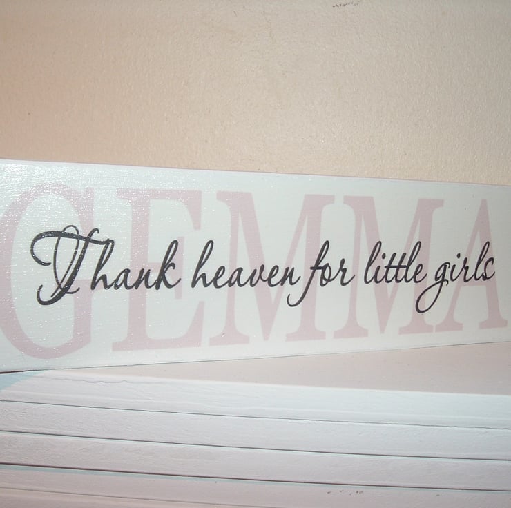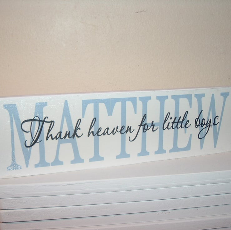 lovely little plaque sign personalised name approx 2 x 8 inch painted in antique white,and baby blue or pink name, free standing but supplied with hanger should you wish to hang thank you