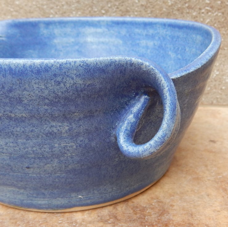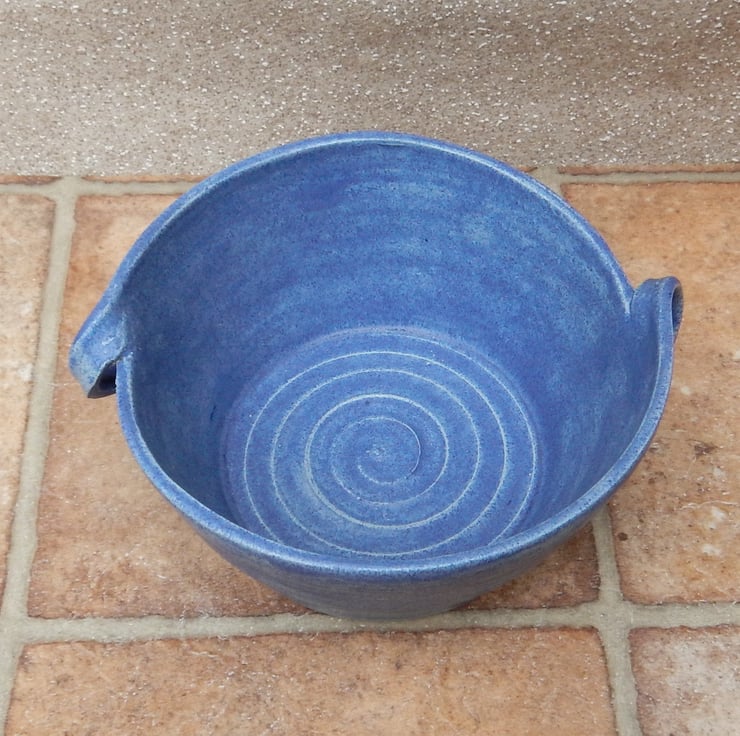 Hand thrown on my pottery wheel using strong white stoneware clay and finished in a lovely sky blue satin reactive glaze.