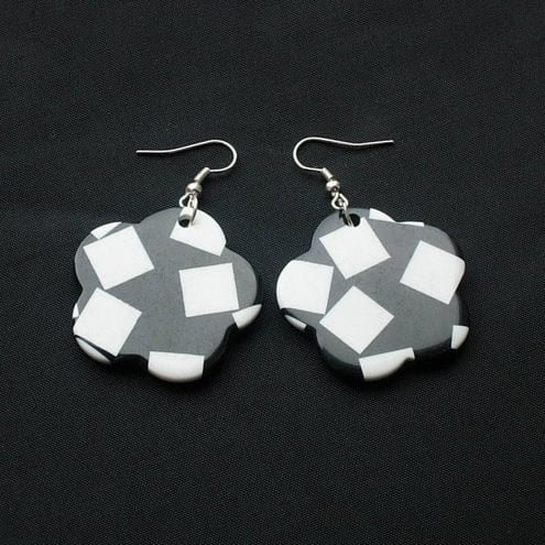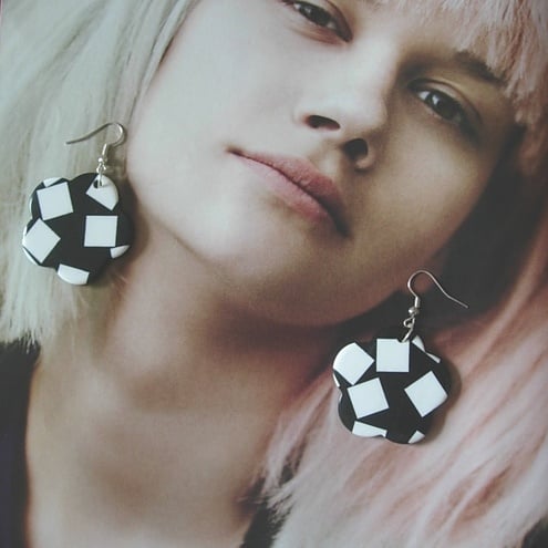 I have made these fun little Retro 60's inspired earrings. They are black/white Retro in the style of 'Mary Quant'. The list price is for one pair of earrings with silver plated ear hooks.