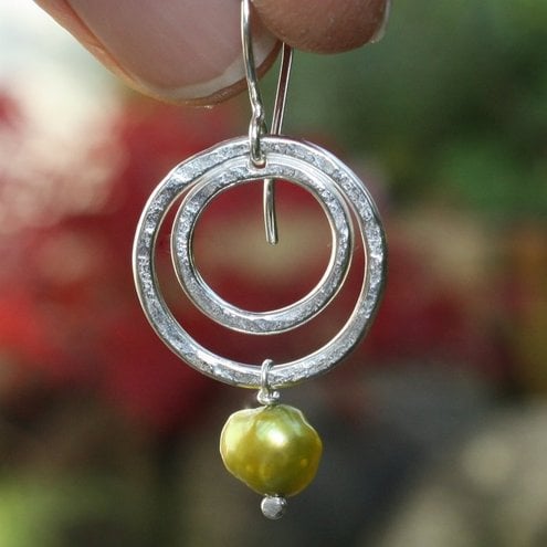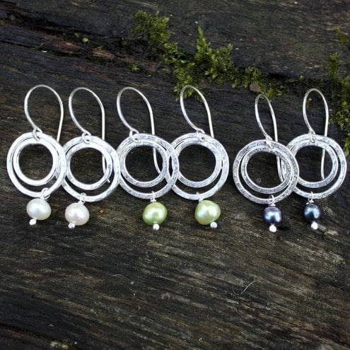 This listing is for a bright ,green pearl pair, if you would prefer purple/black or cream pearls, or oxidised silver, contact me
