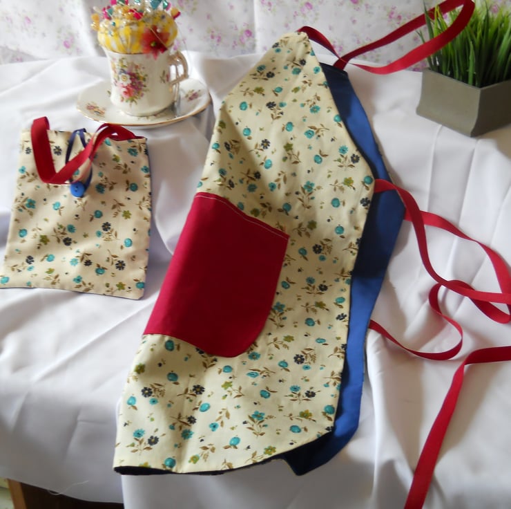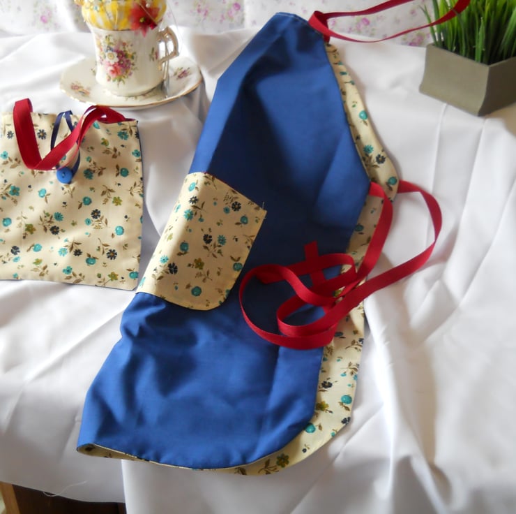 An adorable colourful apron for Mummy's little helper. This mini pinney is made of cotton fabric. the straps are made with grossgrain ribbon. It is reversable which is a bonus as it's like having two aprons for the price of one. It comes with a matching carry bag. I will be listing more of these in different fabric combinations. If you want more than one pinney please contact me I am more than happy to take orders.