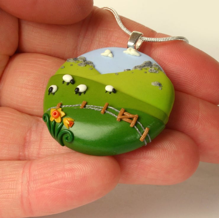 This typical beautiful scene from Wales was the first thing i took inspiration from when deciding to create some jewellery from Polymer clay. I love the landscape i live in so much its not surprising it finds its way out in most things i create :) Who couldn't love the lush green hills and windswept crags and those silly woolly sheep?