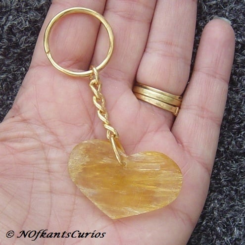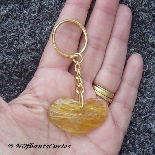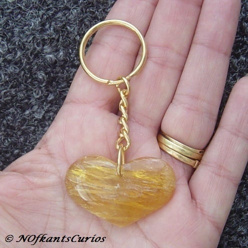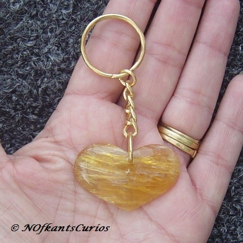 Golden Fluorite is a Beautiful, Stunning Golden striped Heart Keyring, with Goldtone keychain & split ring, to make this item useable as a keyring, or handbag attachment.
