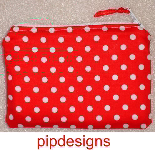 This cute little zipped purse has been made with a Red & White Polka Dot fabric and lined in a white fabric.