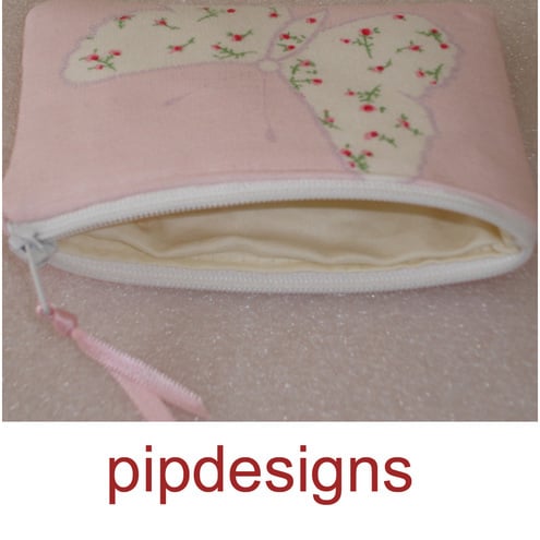 This cute little zipped purse has been made with a Laura Ashley cotton fabric featuring pretty butterflies on both sides and is lined with a plain cream fabric.