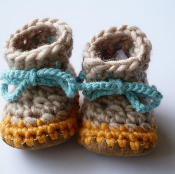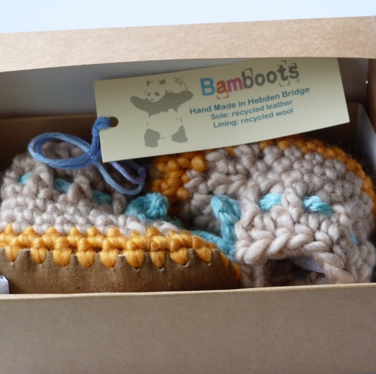 These funky little shoes will keep your baby's feet snug and warm and add a dash of colour to any outfit! Soft chunky stretch fabric for comfort and growing room plus a soft suede non-slip sole. A perfect gift for a baby boy or girl.