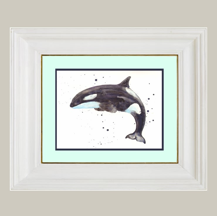 The sheer drama and power of the body and markings of this Killer Whale are what drove me to paint him. A fresh watercolour whale for the coastal themed room.