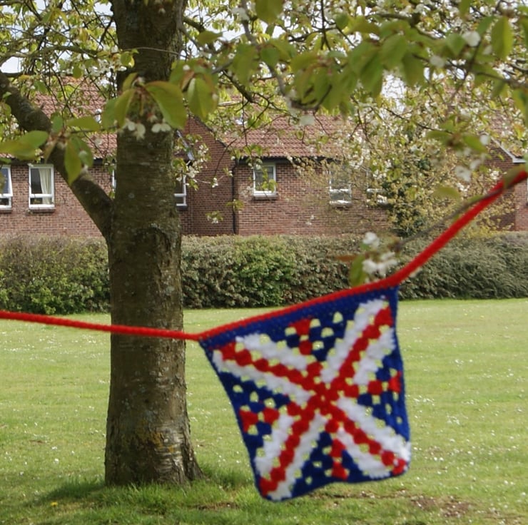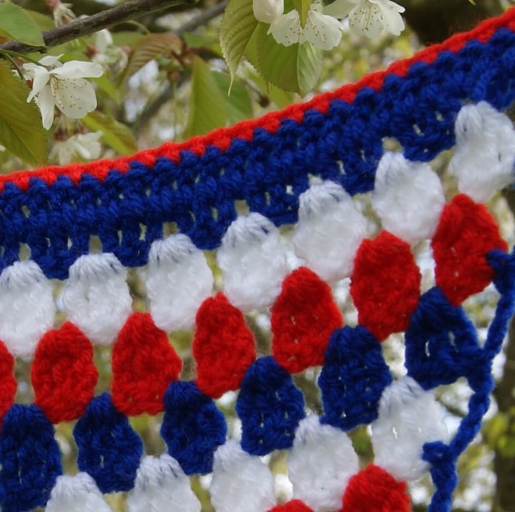 PDF crocheted pattern. A simple to make celebratory string of flags. Perfect for craft fair stall decoration, street parties or resale. Make any length you need.