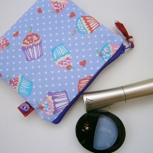 Cute little lilac cupcakes credit card / coin purse with contrasting zip and lining.