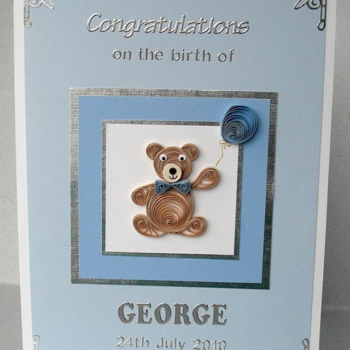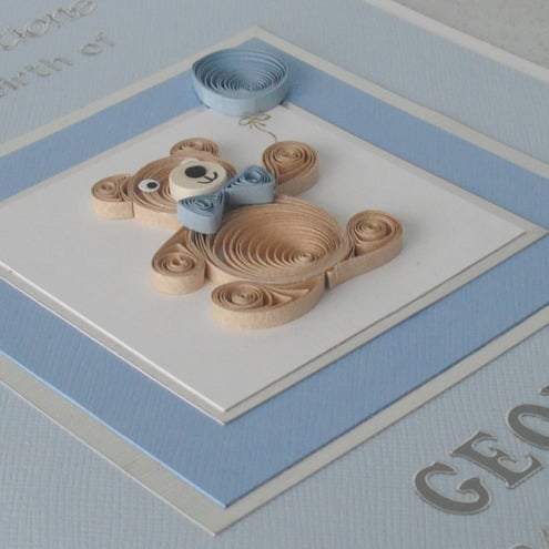 A new baby birth congratulations card, with quilling