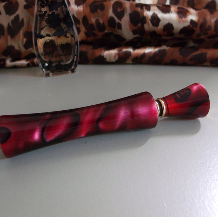 Turned from a beautiful piece of Carmine coloured acrylic, with a little black added in for interest!