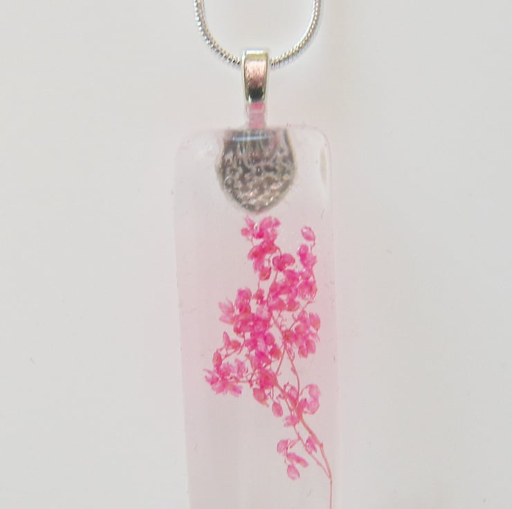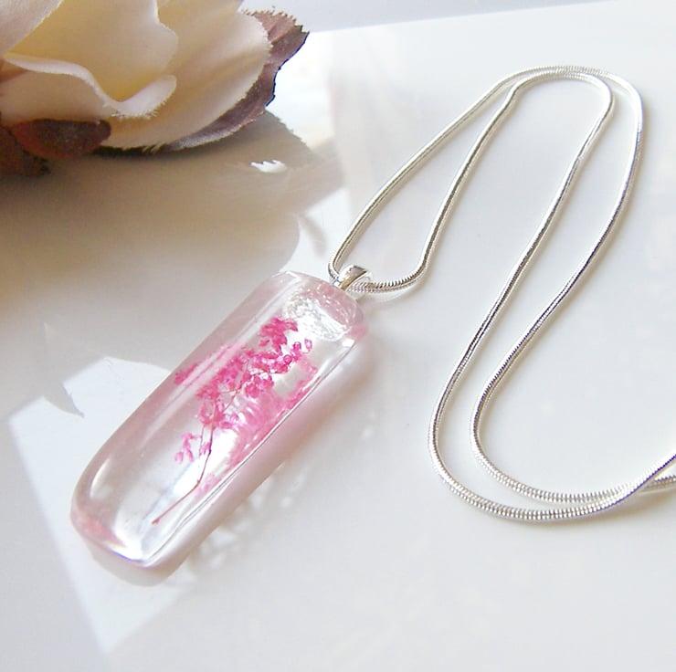 Real Pink Flower Botanical Necklace in Resin - PRETTY IN PINK