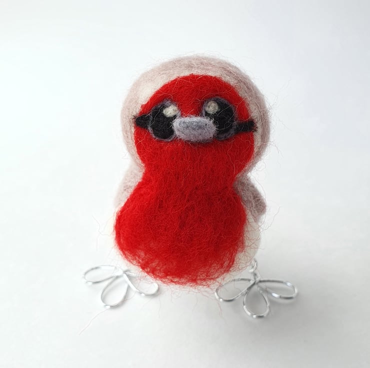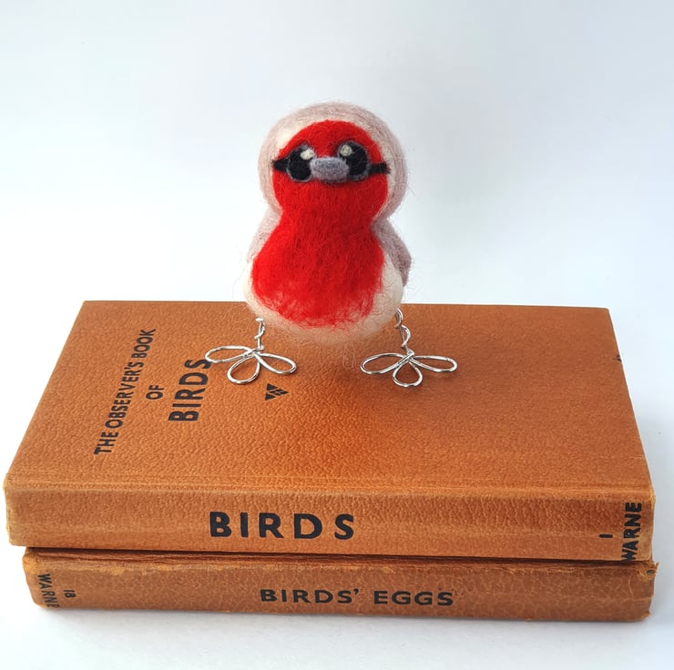 A gorgeous Needle felted robin, a slim version of our Robin made from soft merino wool in beautiful mink and bright red. This little bird is my best selling bird!