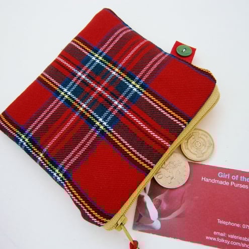 Pretty little colourful tartan fabric coin purse, perfect for your coins, notes and cards.