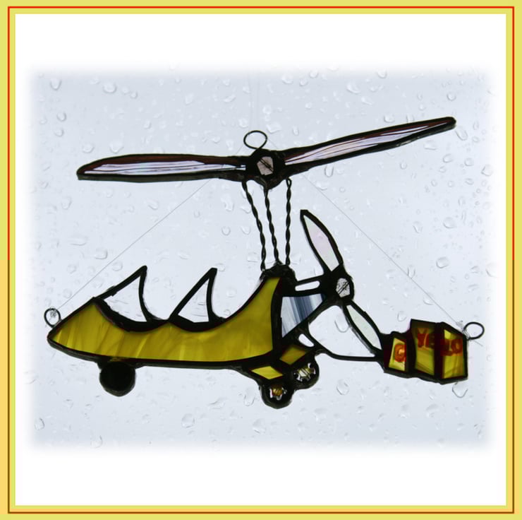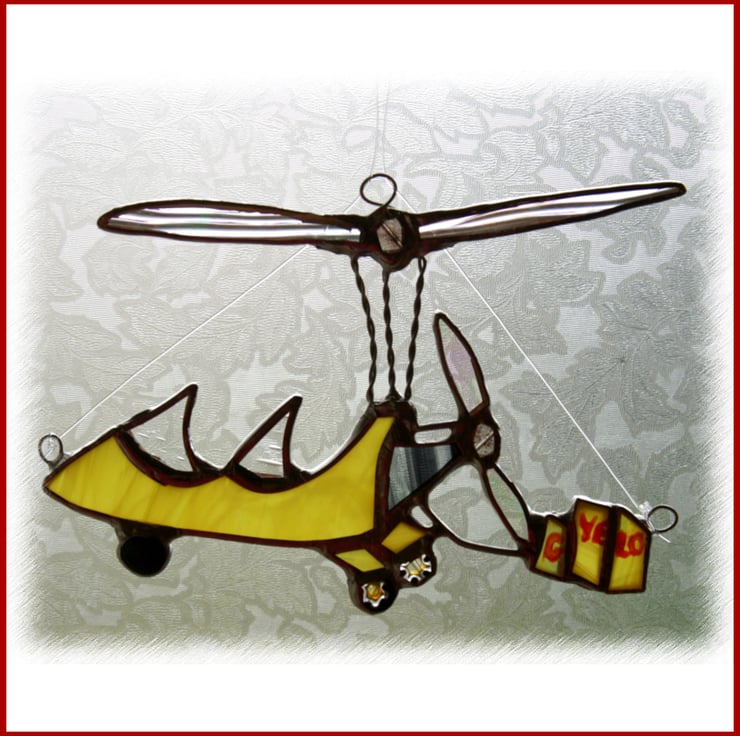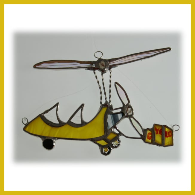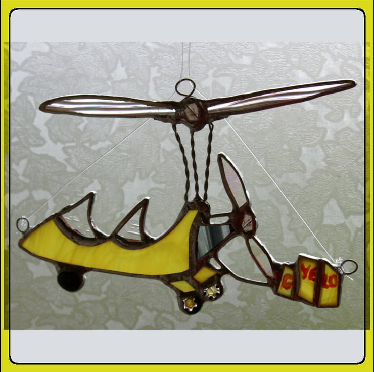This has been handmade to order and is an AutoGyro, a bright yellow gyro copter which I have made using a tracing from a photograph as a pattern.