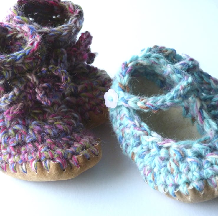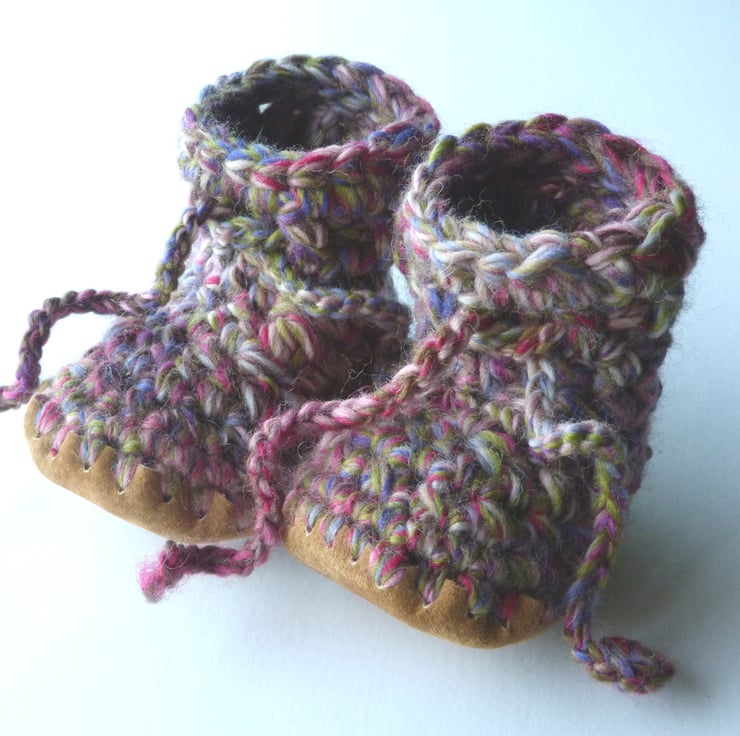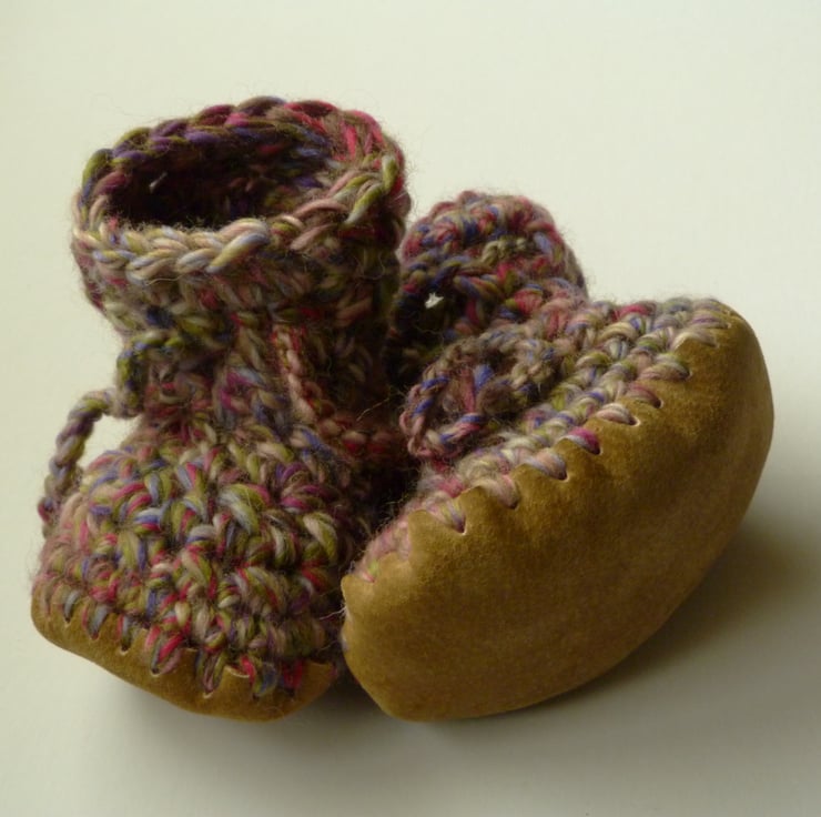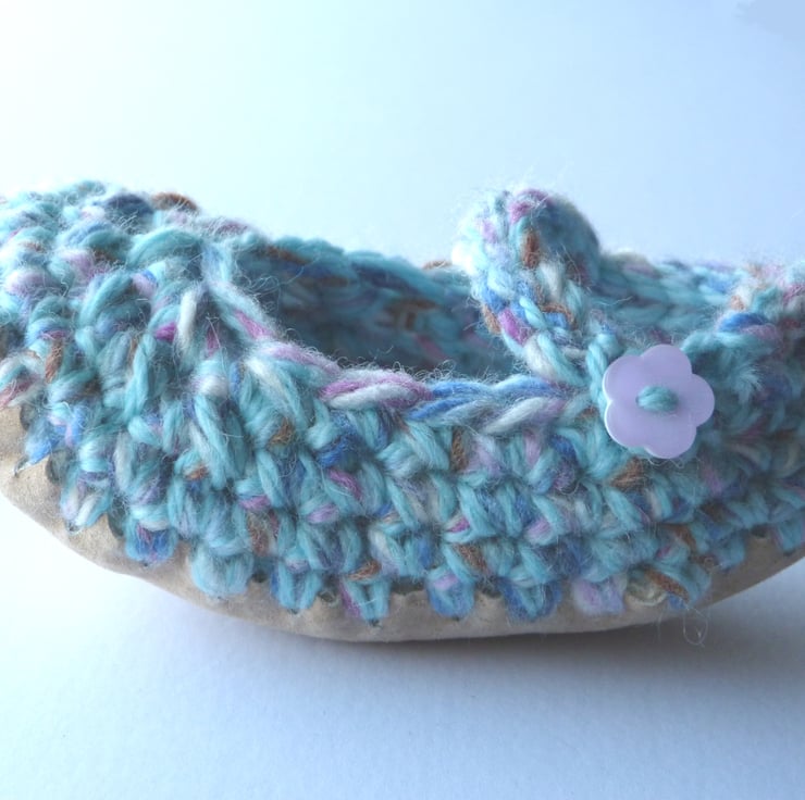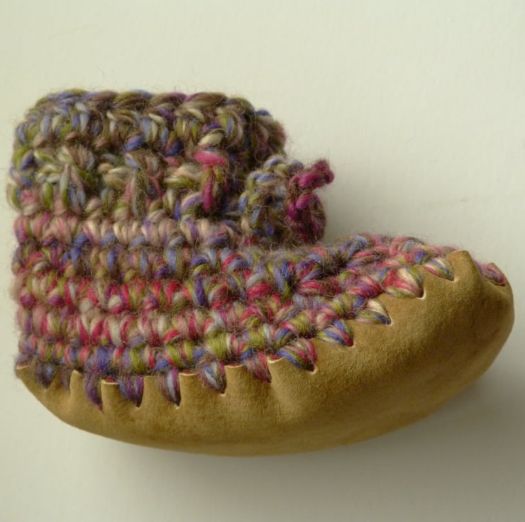 These funky little shoes will keep your baby's feet snug and warm and add a dash of colour to any outfit! Warm woollen fabric with stretch for comfort and growing room plus a soft suede non-slip sole. A perfect gift for a baby girl.