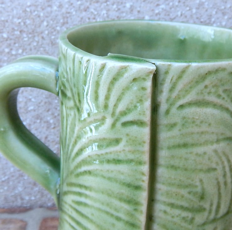 I have added a leafy texture and finished it in a lovely celadon light green glaze