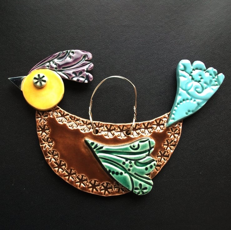 This cute little bird is designed to hang on the wall or from a plant or anywhere you like really!