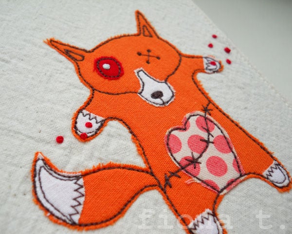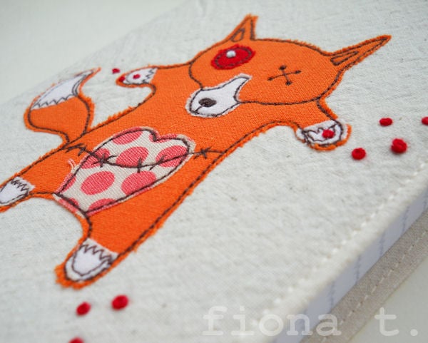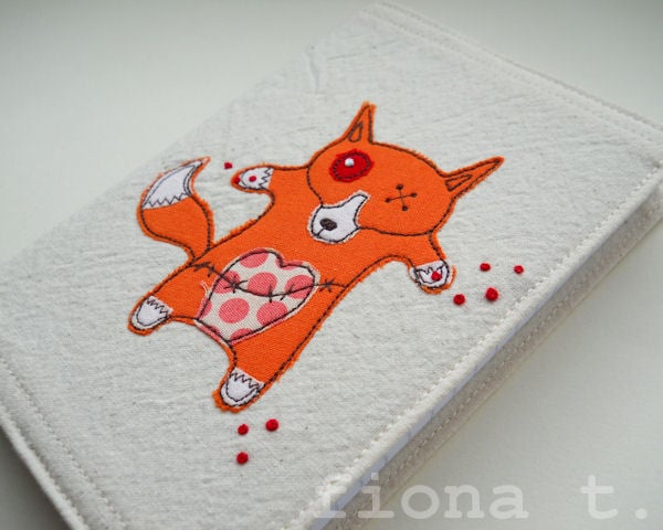 zombie fox embroidered fabric notebook cover & A6 notebook.