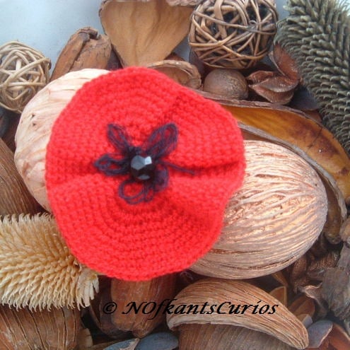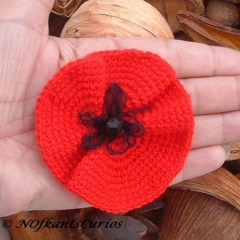 The roll over pin mechanism securely closes, to ensure it stays on your garment, or handbag, ensuring that your poppy should not spring open.