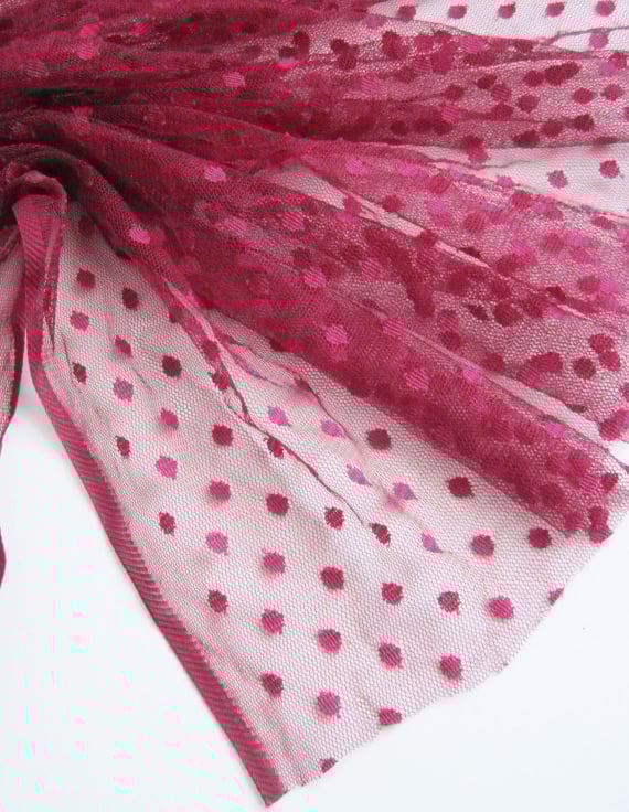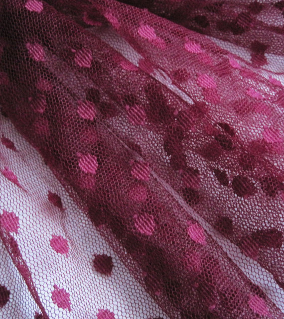 Beautiful burgundy self-spot tulle fabric, sold per metre (approx 39") and cut in one continuous length.