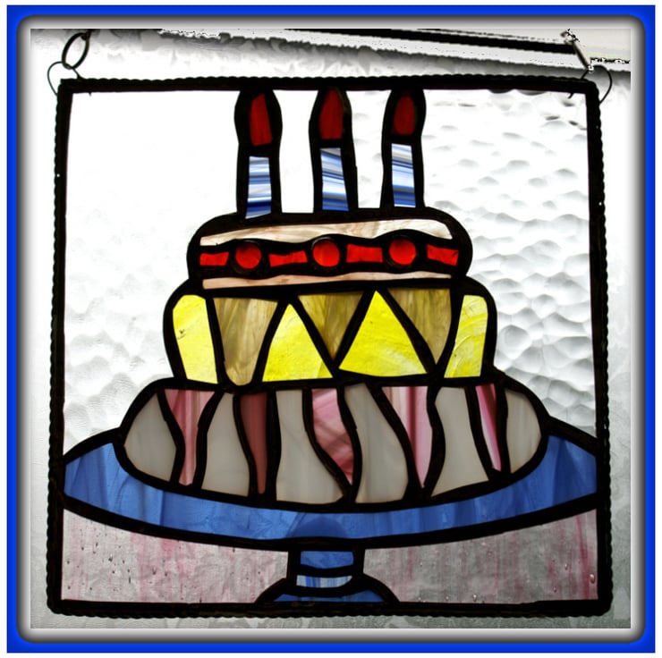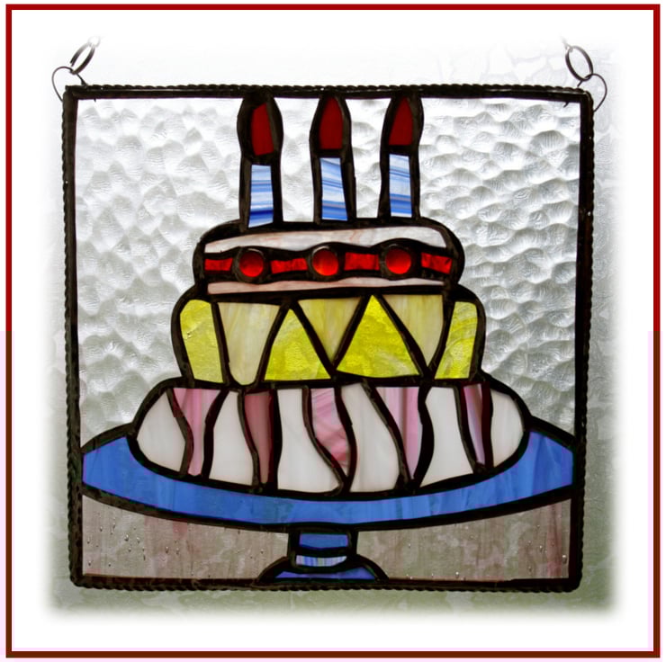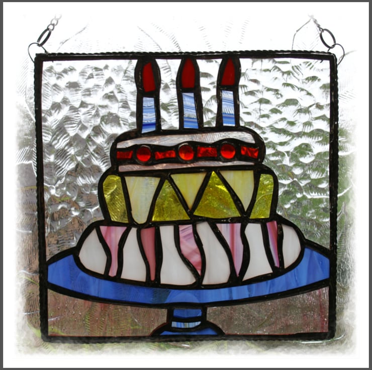 I am really rather excited by this new piece as it is quite delightful and looks super hanging in the window where it shines and catches the light to show off its bright and tempting different layers of cake.