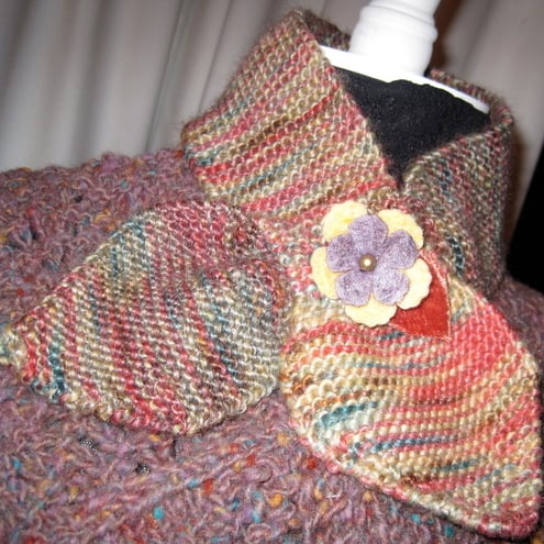 A smart solution for cool days in town, this scarf can be whisked off when you get into a hot shop, office or studio, the little flower brooch is included. Two for the price of one!
