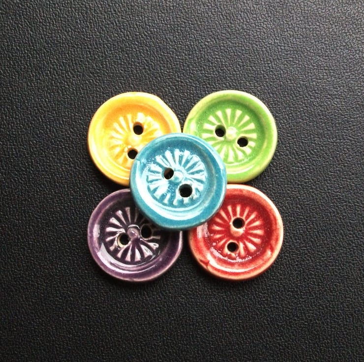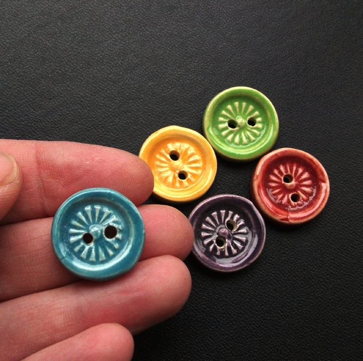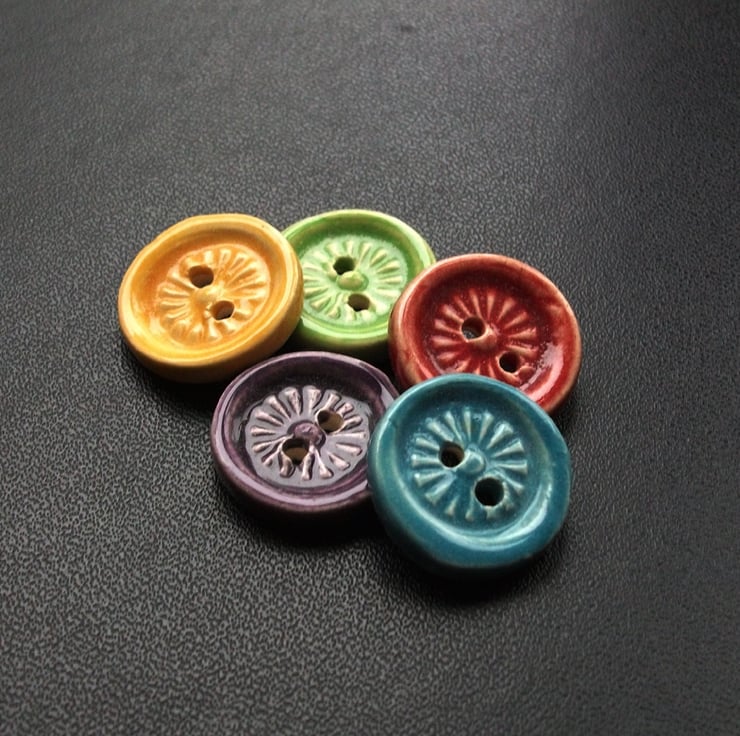 These buttons have been stamped and cut from white earthenware clay.