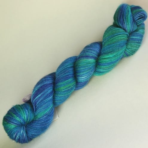 Shades of blue, teal and emerald green. This gorgeous and luxurious yarn has the softness and warmth of alpaca with the smooth sheen and cool feel of silk. This is the 4-ply/sock weight equivalent of the my bestselling silky baby alpaca laceweight, and combines the softness and luxury of the baby alpaca/silk blend with the versatility of 4-ply yarn.