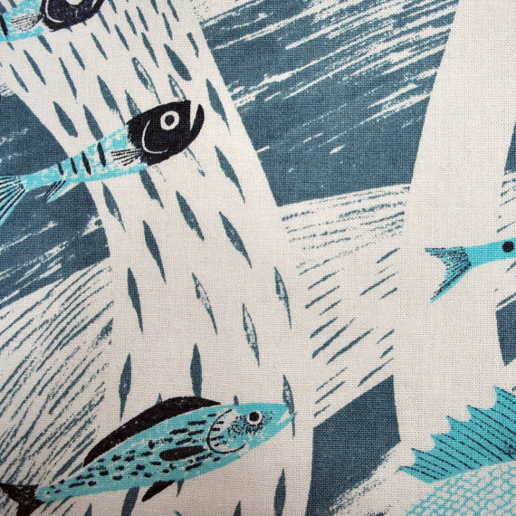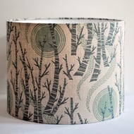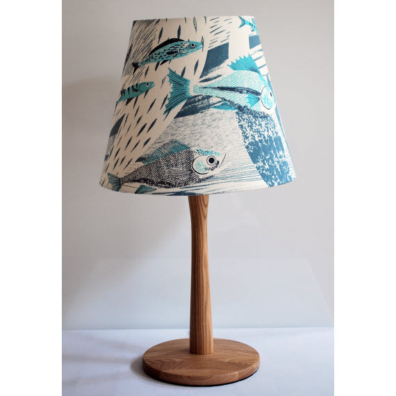 Handmade Drum lampshade with a modern tapered profile, in Deep Sea, a three colour pattern, designed by Emily Sutton and produced in the UK by St Jude's. I am extremely pleased to be working with St.Jude's, producing lampshades using their wonderful fabrics.