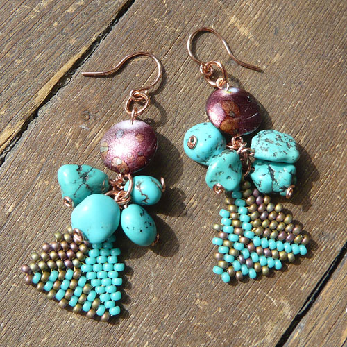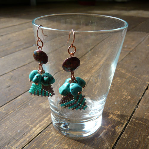 The matching earrings are about 5.5cm (2.1 inches) long with copper plated earwires.