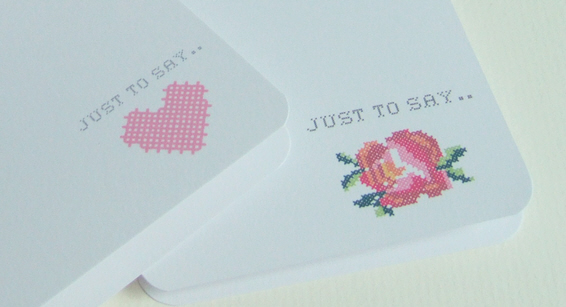 A set of four four notecards with envelopes inspired and delicately designed in a cross stitch theme.
