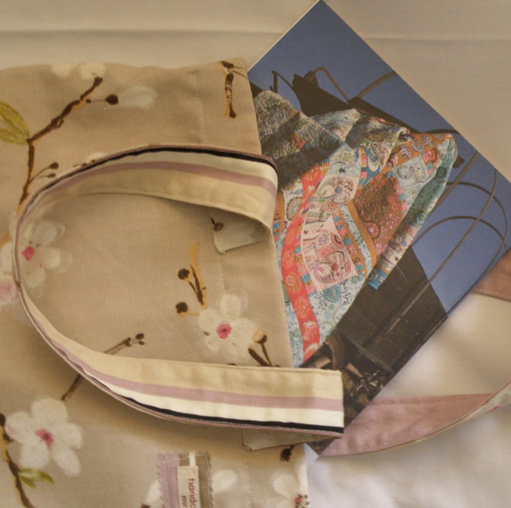Its lined with sumptious cotton voile with pink and white tiny flower pattern. i just love that the outer fabric is made by Prestigious Fabrics in the UK. This bag is waiting to be used