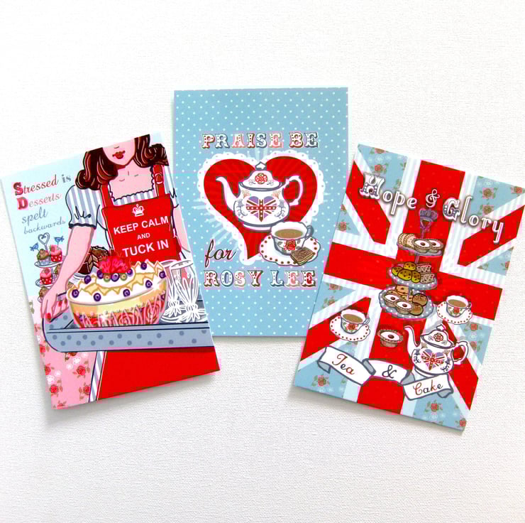 Pack of 3 postcards in 3 designs printed onto 350gsm gloss card. Post them, frame them, stick them on your fridge - be sure to love them and they will add a splash of warmth and colour to your day!