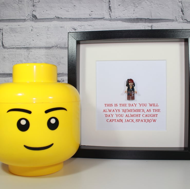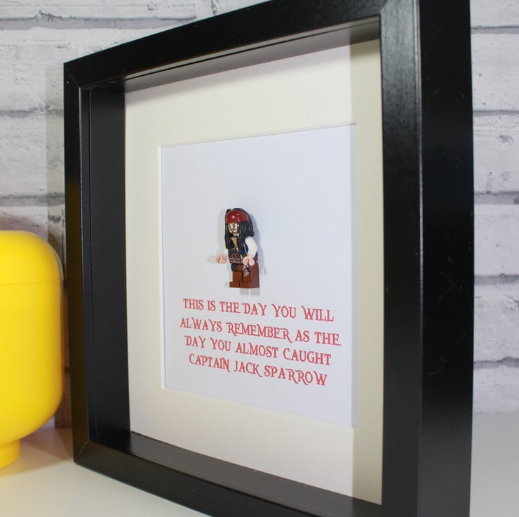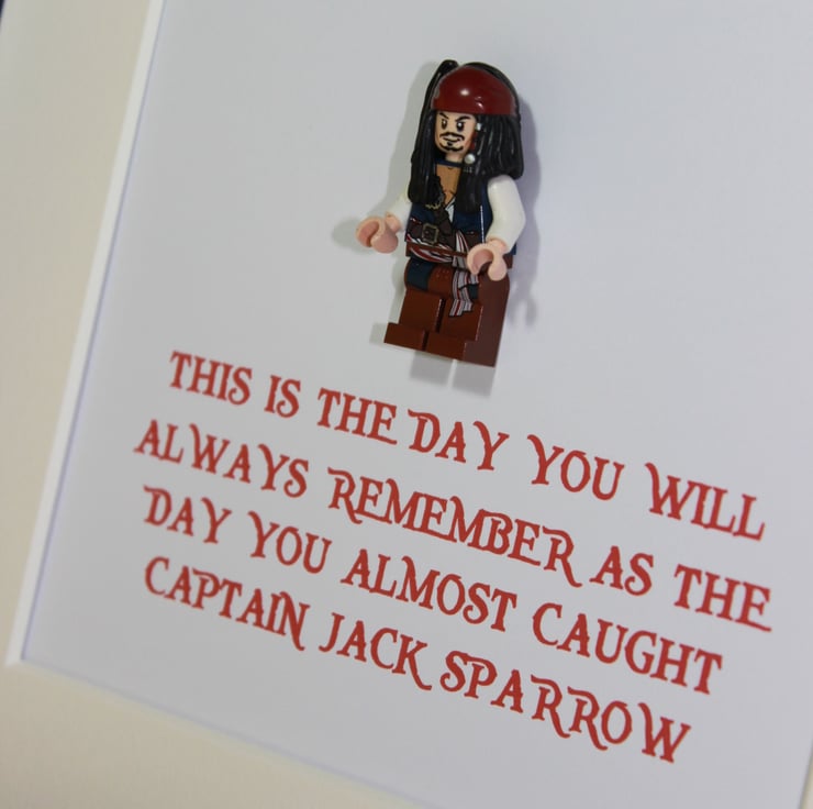 One of the most recognisable characters of the silver screen in recent years is that of Johnny Depp's portrayal of the lovable pirate Captain Jack Sparrow in Pirates of the Caribbean. We have framed this original Lego minifigure along with his famous quote "This is the day you will always remember as the day you almost caught Captain Jack Sparrow"... This would make a great gift for any fan of the Disney movies or Mr Depp himself.