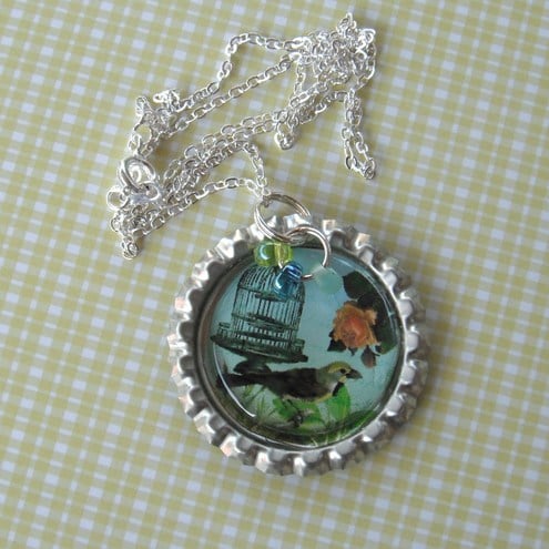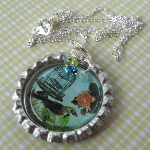 This lovely necklace is made from a bottle cap.