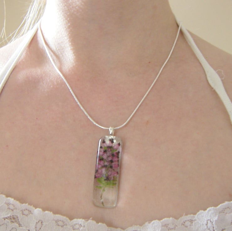 Scottish Purple Heather Flower Pendant - Wearable Art - HEATHER