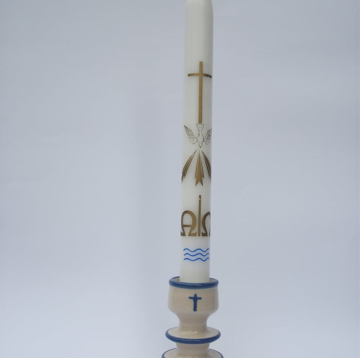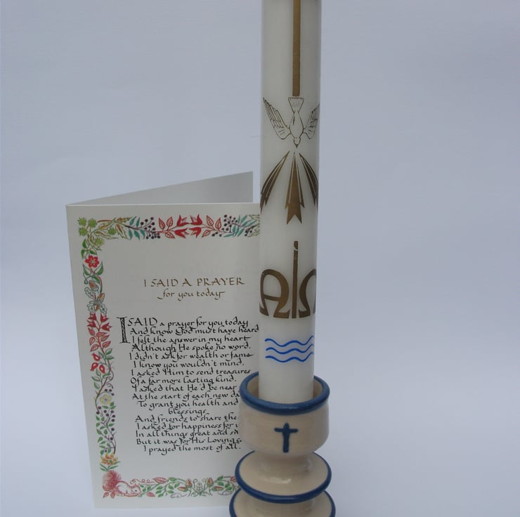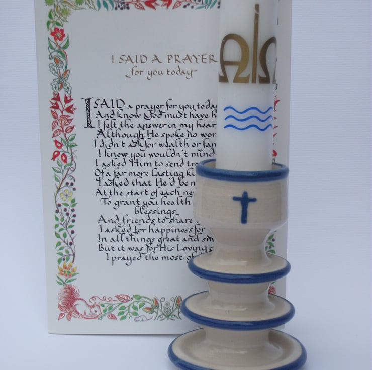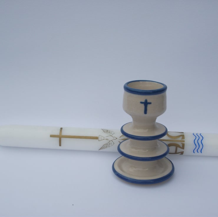 Each time one of my children were Christened they were given a candle as part of the service. The priest would then tell me to light the candle for a little while on their birthdays. I didn't. They stayed in a draw. One day I decided it was time to get them out but no candlestick seemed appropriate so I made them one each. Now my Godchildren have them as well. I would like to share the opportunity of your special children having a candlestick too.