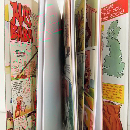 The front and back cover are made from the Topper Book itself and show some of your favourite Topper characters up to their usual nonsense! Inside are 40 pages (80 sides) of rescued blank computer paper together with stories from some of your favourite characters including Desert Island Dick, Tricky Dicky, Souper Boy and Beryl the Peril.